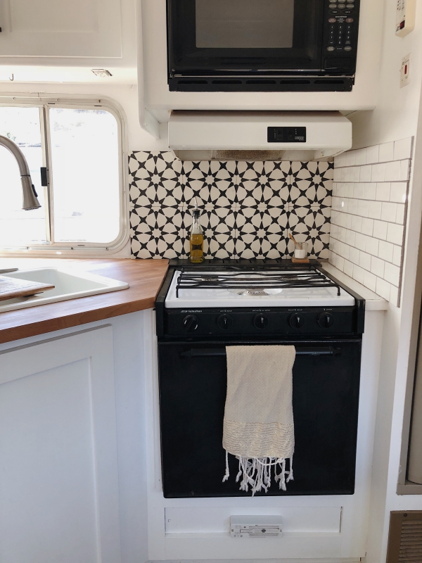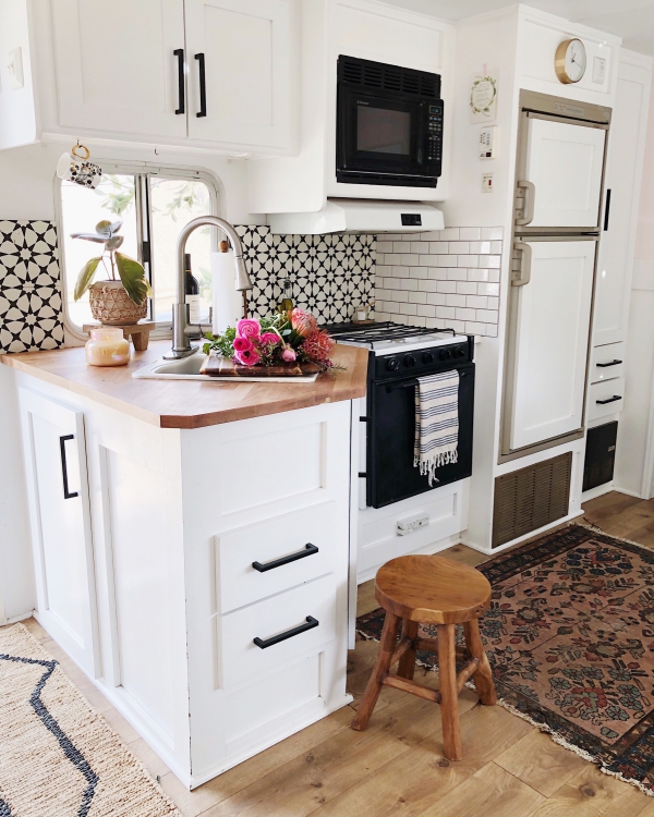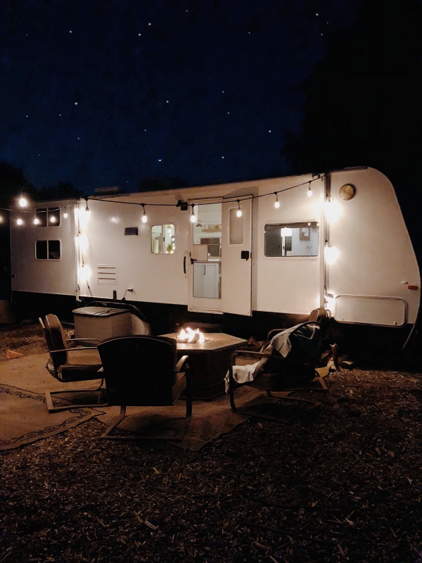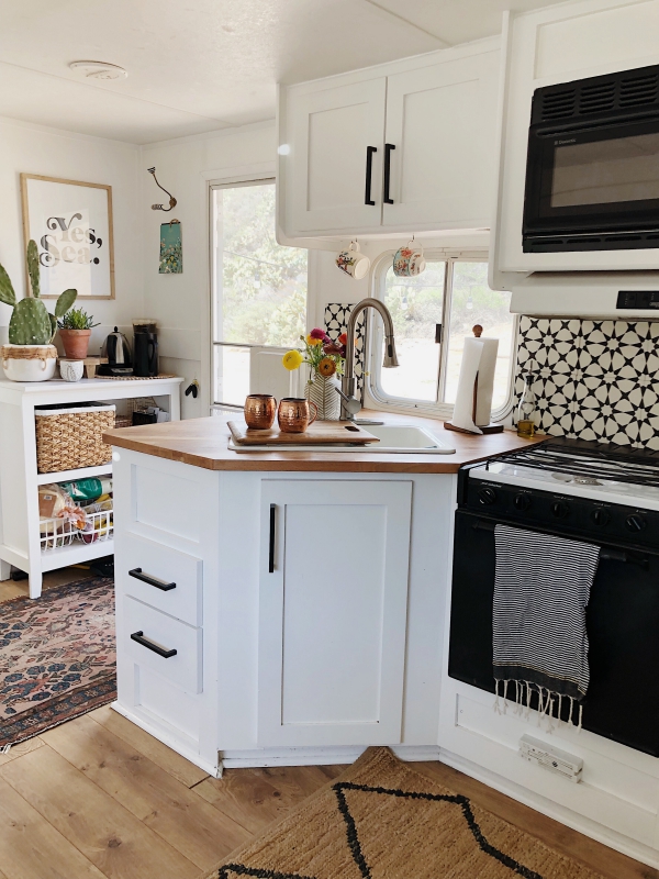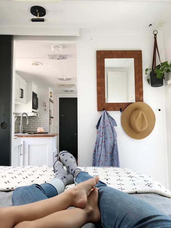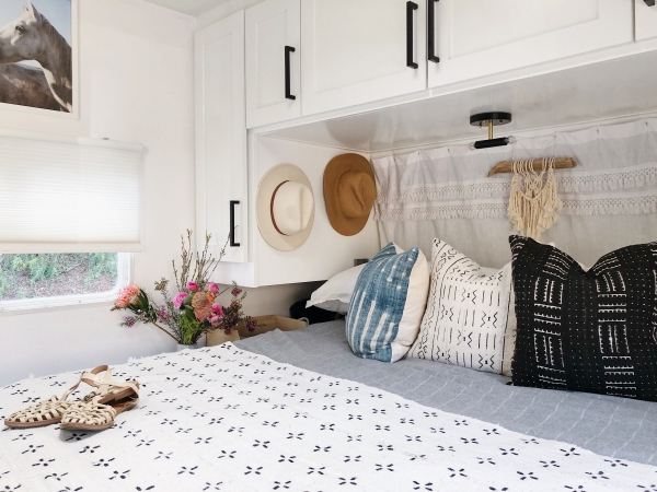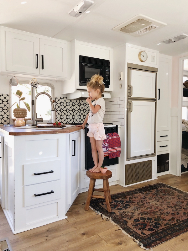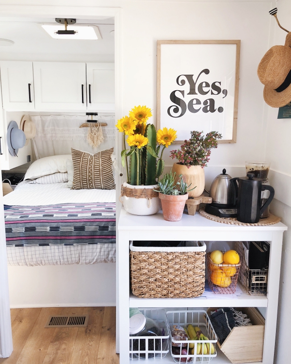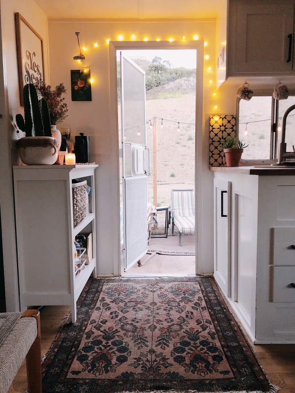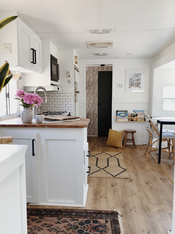 Το τροχόσπιτο έχει μια κυρίως κρεβατοκάμαρα για το ζευγάρι, μια τριπλή κουκέτα για τα παιδιά και έναν ενιαίο χώρο κουζίνα, τραπεζαρία καθιστικό. Και είναι cozy. Και πανέμορφο: