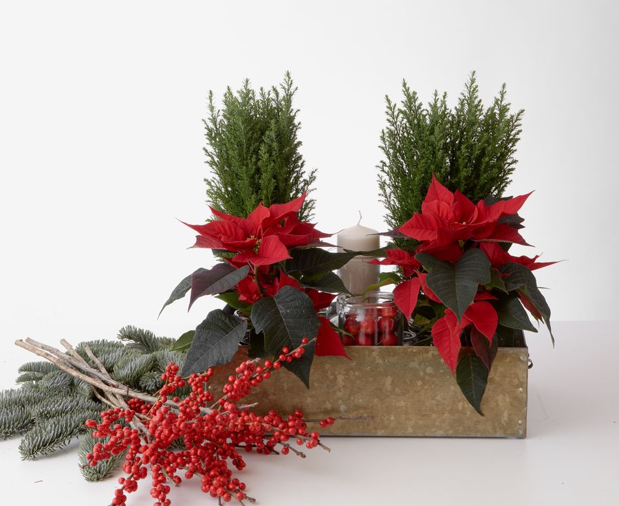 Ένα vintage μεταλλικό κουτί, διακοσμημένο με φυσικά υλικά και Αλεξανδρινά, δημιουργεί μία υπέροχη σύνθεση και το ιδανικό δώρο για την εορταστική περίοδο. Είναι εύκολο να το φτιάξετε στο σπίτι. Τα κρυφά βάζα λειτουργούν ως βάση σε αυτή τη σύνθεση, η συναρμολόγηση της οποίας θυμίζει παιδικό παιχνίδι.
