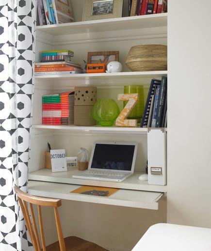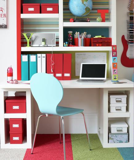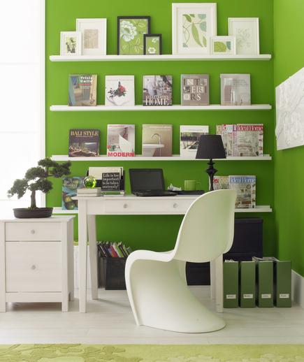- Αν σας αρέσει το ποπ ύφος μη φοβηθείτε να βάλετε χρώμα στη βιβλιοθήκη και στην καρέκλα του γραφείου. Φροντίστε μόνο να εναρμονίζεται και με τον υπόλοιπο χώρο.