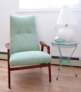 Τέλος, μεταποιούμε τα υφάσματα-είτε σε καπέλα φωτιστικών είτε τα καλύμματα για μαξιλάρια, τα αντικαθιστούμε με νέα υφάσματα και προσθέτουμε ακόμη και χρηστικά στοιχεία για διακόσμηση όπως κουμπιά και κορδόνια.