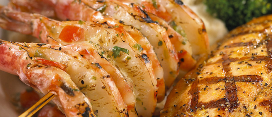 Τι περιέχει: Συνδυασμός από φιλέτο φρέσκου σολομού σχάρας καρυκευμένο με λεμονοπίπερο και επικαλυμμένο με maison butter, και σουβλάκι με γαρίδες ψημένο στη σχάρα που περιχύνεται με σπιτική λεμονάτη Scampi sauce. Συνοδεύεται από ρύζι με μυρωδικά και Tomato Basil Salsa.