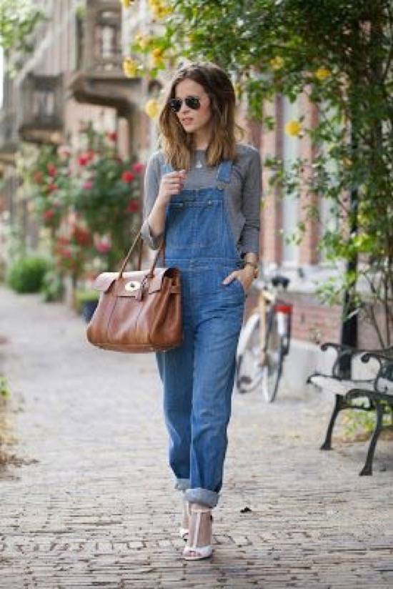 #1: Μια ντένιμ ολόσωμη φόρμα εργασίας + ένα μακρυμάνικο πουλόβερ + sneakers