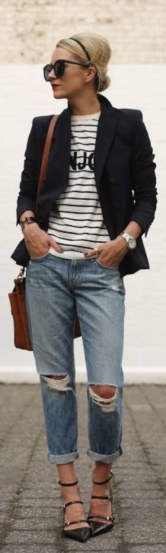 #5: Ριγέ πουκάμισο + boyfriend τζιν + oxford παπούτσια