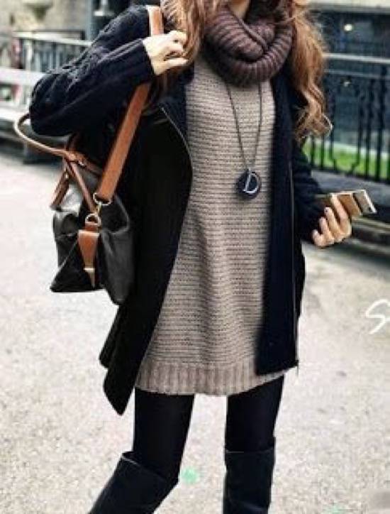 #2: Κασκόλ + φόρεμα πουλόβερ + μπαλαρίνες