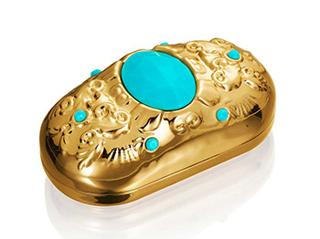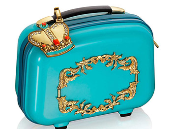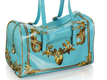 Όταν πρόκειται να ταξιδέψετε, φυλάξτε όλα σας τα αξεσουάρ σε ένα τουρκουάζ τρόλεϊ διακοσμημένο σε χρυσά μπαρόκ μοτίβα. Θα φωτίσει την αίθουσα αναμονής του αεροδρομίου και θα ξεχωρίσει απ’ όλες εκείνες τις ανώνυμες γκρι βαλίτσες…
