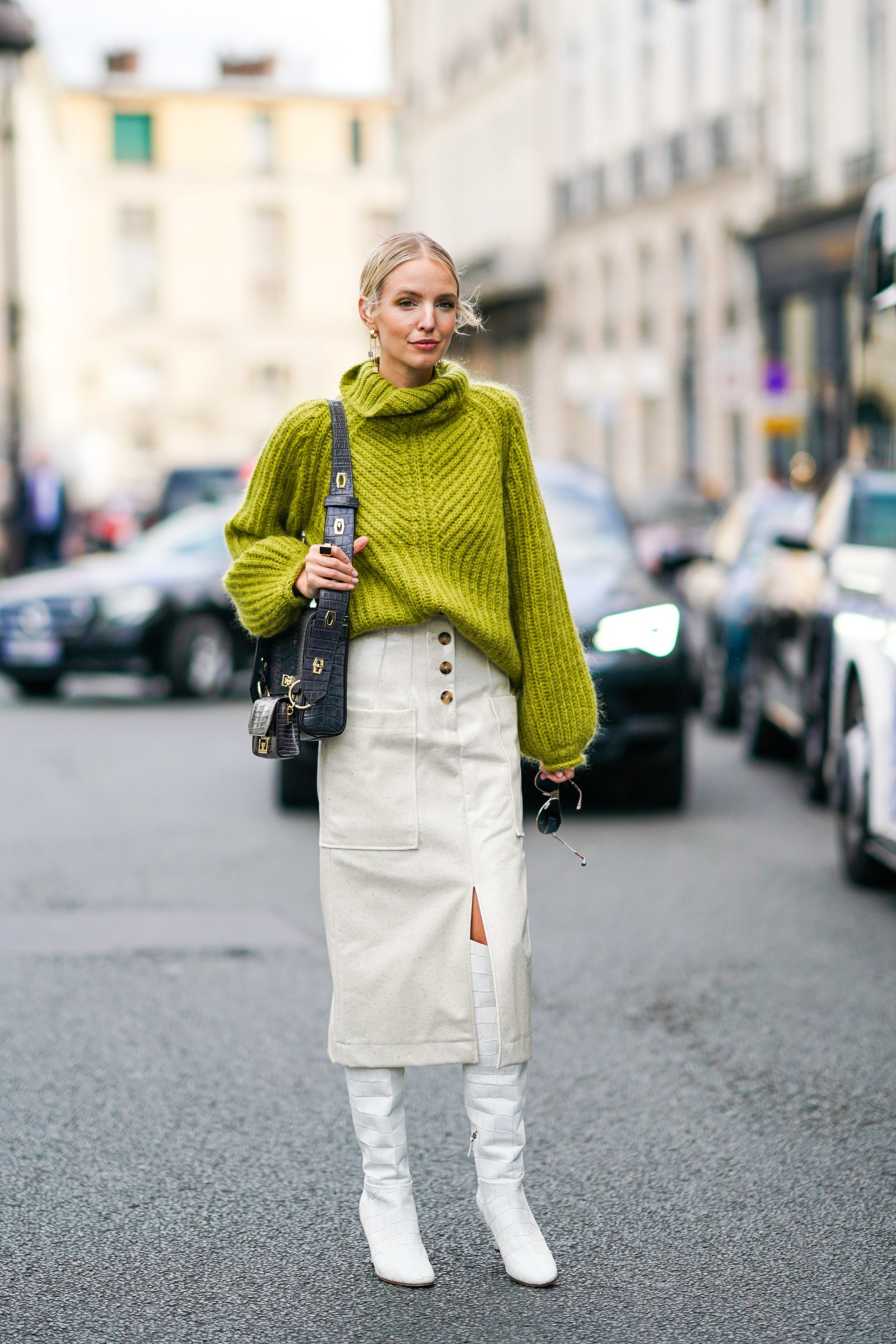 Και η κλασσική επιλογή: oversized πουλόβερ με στενό παντελόνι ή κολάν