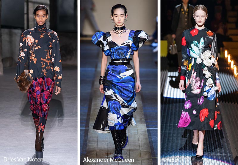 Μεγάλα φλοράλ μοτίβα και γραμμές που μας μεταφέρουν στην δεκαετία του ‘50, σε κόκκινες και πορτοκαλί αποχρώσεις του φθινοπώρου, είναι η νούμερο ένα επιλογή οίκων, όπως οι Prada, Dries Van Noten, Richard Quinn και Erdem.