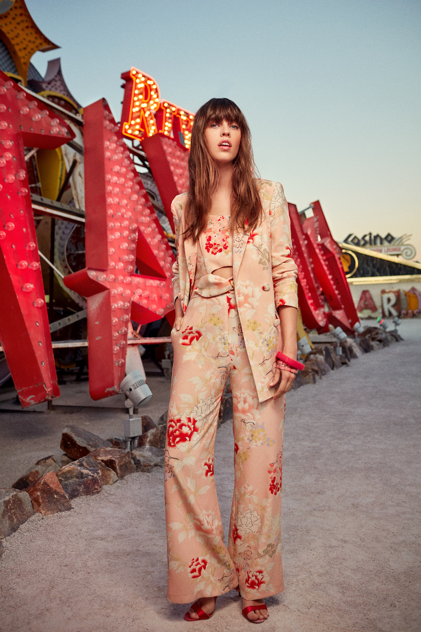 Αναχωρώντας από το Παρίσι, με τα άψογα Grand Méchant Looks τους γεμάτα prints που αποπνέουν θηλυκότητα και μια αίσθηση ελευθερίας, οι τρεις Παριζιάνες φίλες της Naf Naf καταφτάνουν στο Las Vegas όπου μεταμορφώνονται σε κομψά cowgirls: μοτίβα με αλυσίδες, κεντητές μπλούζες με διχρωμίες, φούστες με πλούσια layers, δερμάτινα κομμάτια και σομπρέρο που ολοκληρώνουν το ντύσιμό τους. Άνετα looks εμπνευσμένα από τις θηλυκές σιλουέτες των 70s, με τα βολάν να συνδυάζονται με μπλούζες με γιακά Άσκοτ και τα στενά παντελόνια με τα γεωμετρικά prints να ταιριάζουν με graphic φούτερ.