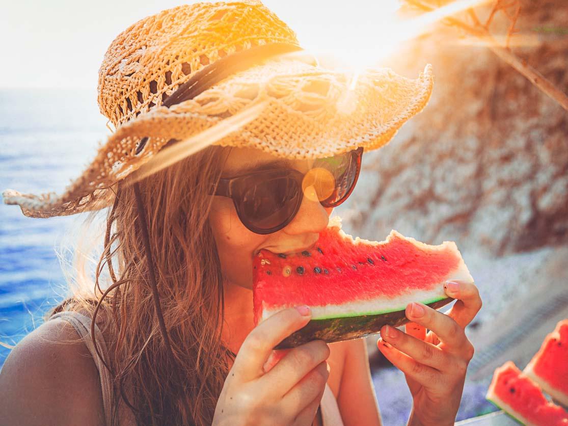 Η παρατεταμένη έκθεση στη ζέστη και τον ήλιο προκαλεί ταχύτερη αφυδάτωση του οργανισμού και ως αποτέλεσμα τείνετε να πίνετε περισσότερο νερό. Η κατανάλωση νερού είναι μια βασική προϋπόθεση για υγιές βάρος, αφού πολλές φορές νομίζετε ότι πεινάτε, ενώ στην πραγματικότητα διψάτε. Μένοντας ενυδατωμένη, αποφεύγετε το τσιμπολόγημα και μένετε χορτάτη για περισσότερη ώρα.
